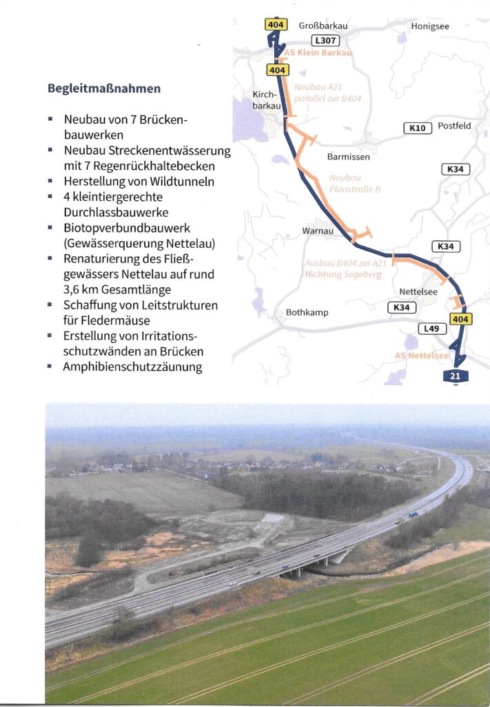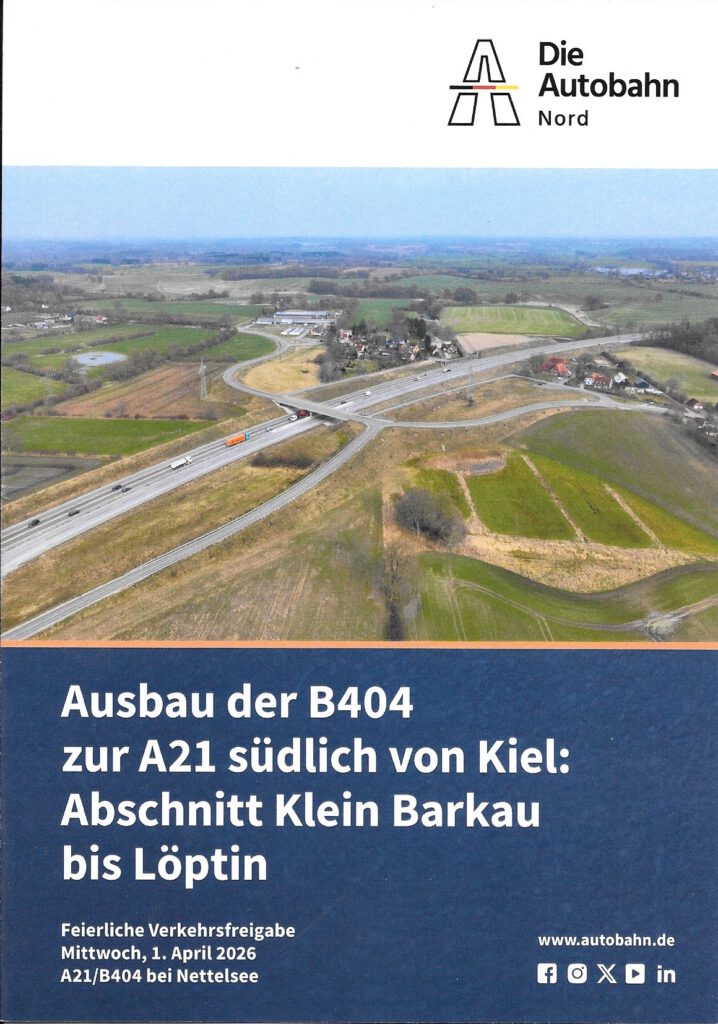 A21: Abschnitt von Klein Barkau bis Nettelsee/Stolpe seit dem 1. April 2026 dem Verkehr übergeben.